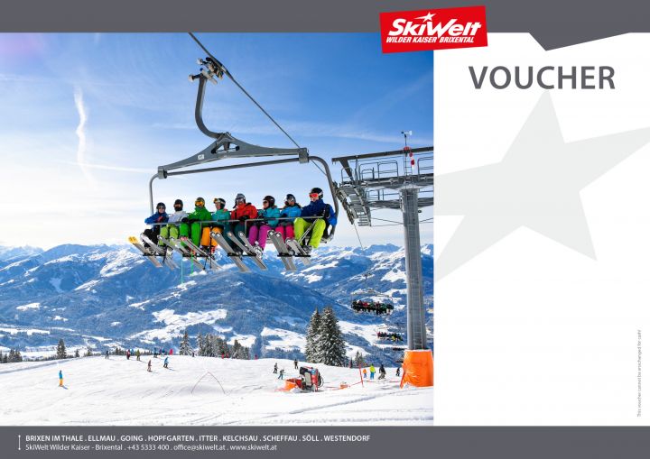 This voucher can only be redeemed at all SkiWelt mountain railway ticket offices in the villages of Brixen im Thale, Ellmau, Going, Hopfgarten, Itter, Scheffau, Söll and Westendorf.